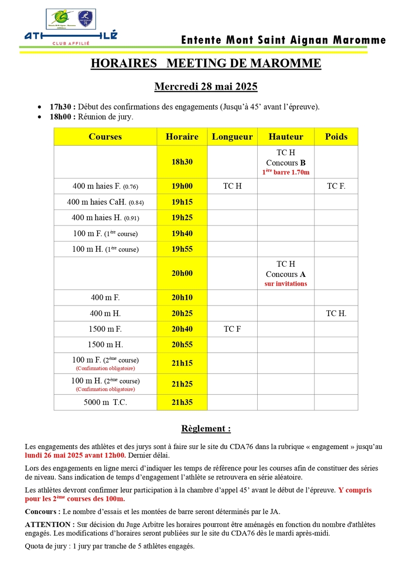Résultats du meeting de Maromme