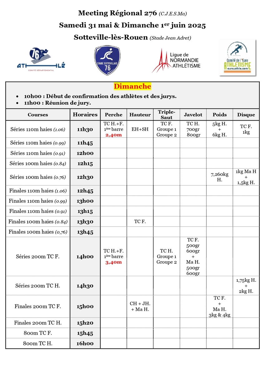 Un magnifique meeting, parfaitement organisé par le Stade Sottevillais 76, la LNA et les CDA 76 et 27.