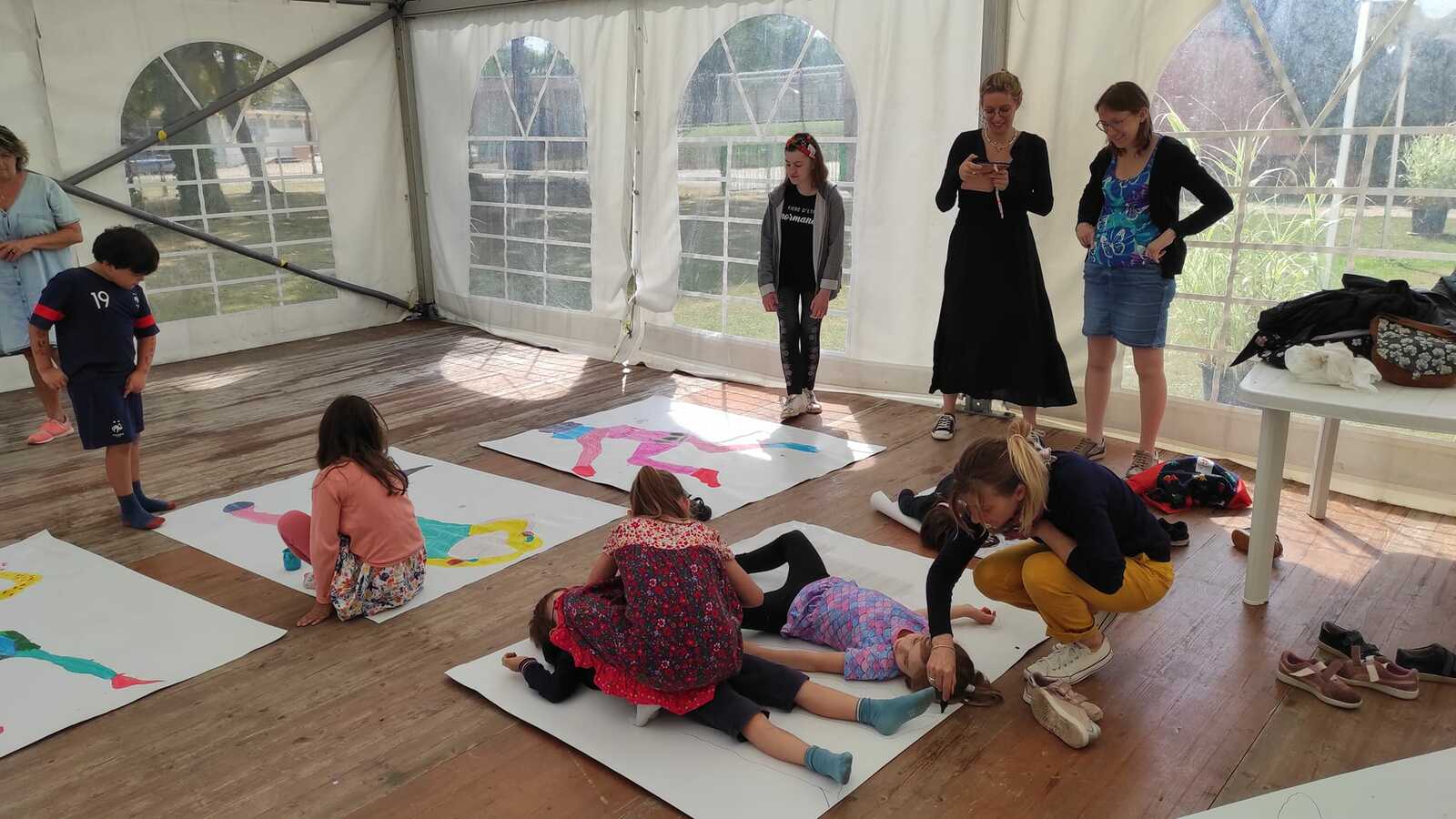 Dessin géant autour de soi, allongé au sol