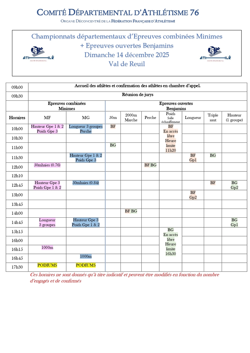 Championnats de Seine-Maritime d'épreuves combinées minimes et épreuves ouvertes benjamins