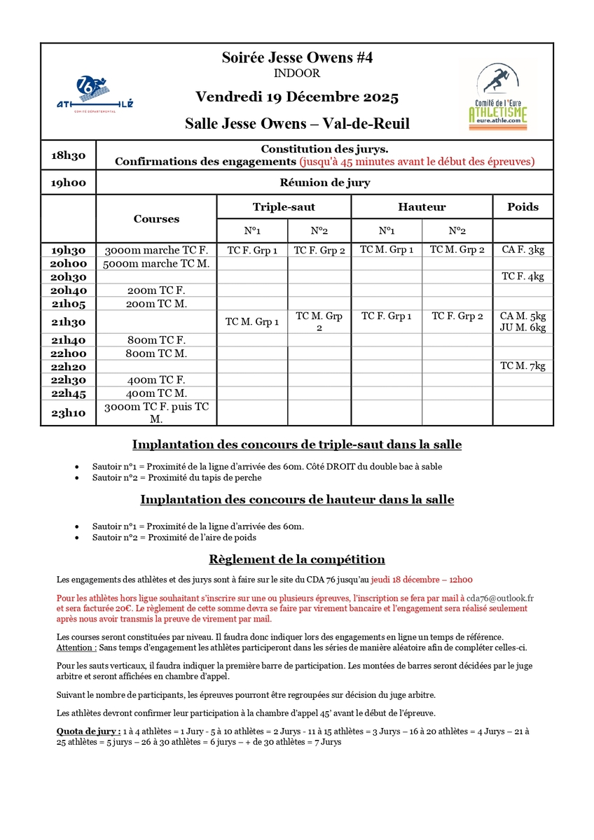Quatrième et dernière soirée Jesse Owens de l'année à Val de Reuil, bien entendu nous nous devions d'êtres là, et nos deux athlètes présents, ont réalisé de belles performances, avec un nouveau record sur piste courte pour Léa sur 200m et la découverte du 800m pour Allan :