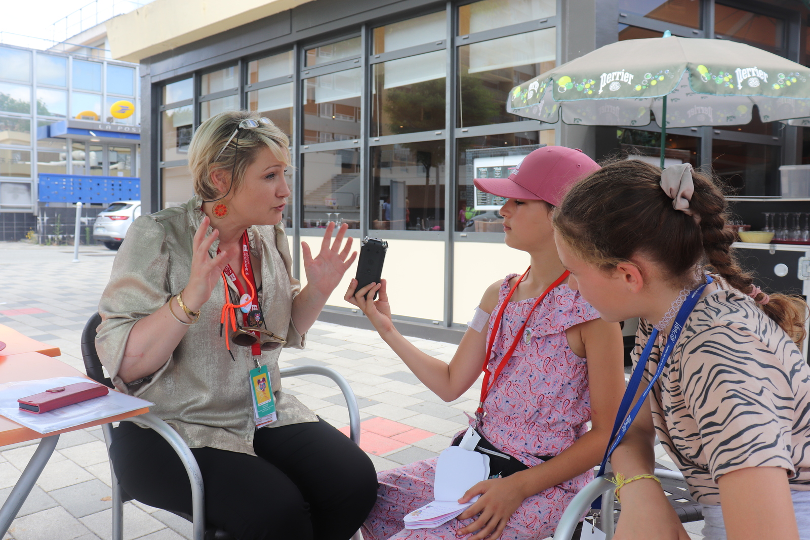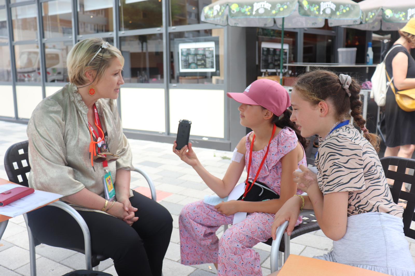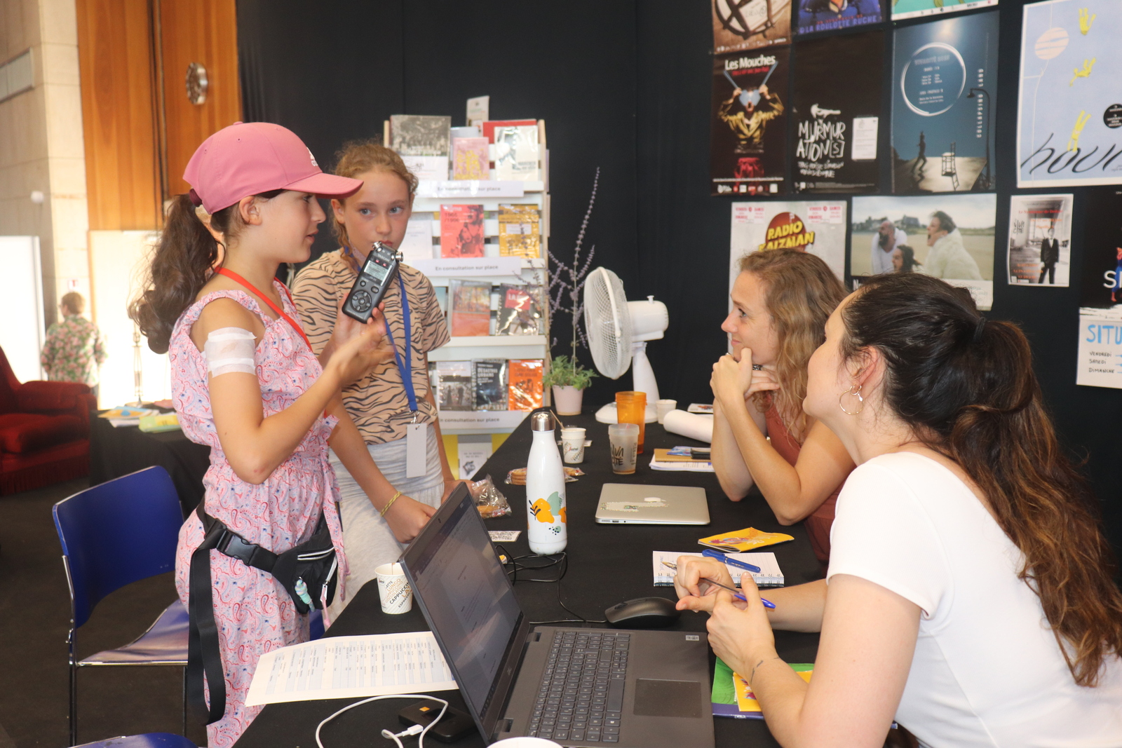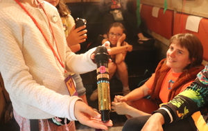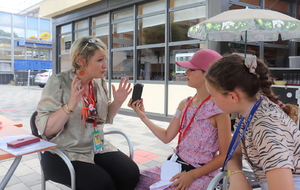 Après ce bon moment avec les comédiens de Radio Banane, une pause déjeuner bien mérité et le retour en famille pour plusieurs de nos jeunes, mais pour deux d'entre elles, la journée n'était pas terminée, bien au contraire, avec des interviews et deux spectacles.