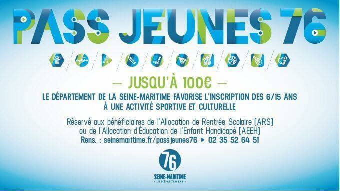 Le Pass Jeunes 76 est une aide financière accordée par le Département de la Seine-Maritime pour favoriser et développer l’offre et la pratique sportive, culturelle et artistique des jeunes habitants de la Seine-Maritime âgés de 6 à 15 ans, dont la famille est bénéficiaire de l’ARS ou de l’AEEH.